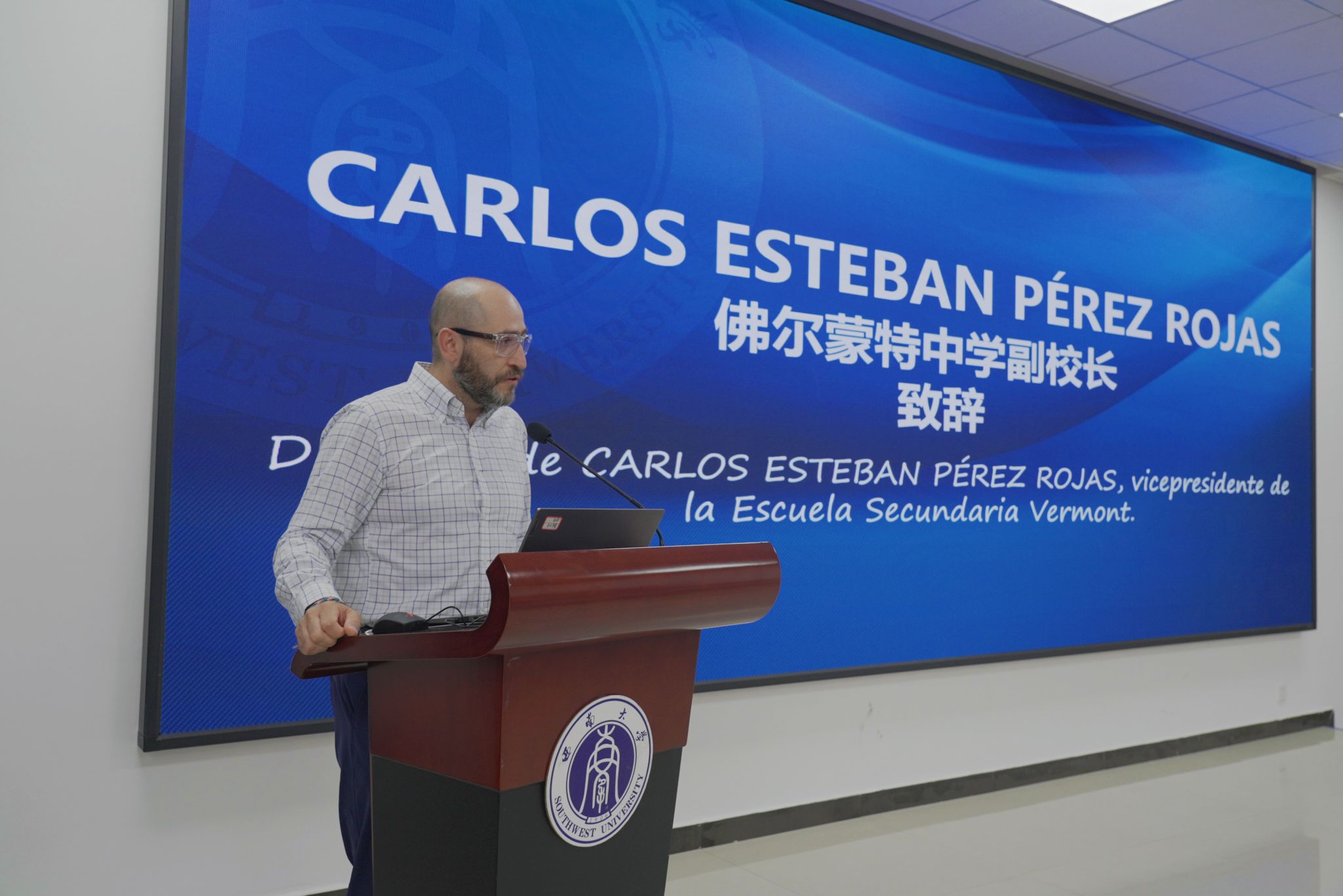 威尔蒙中学员工代表Nicolás Combariza发言,感谢bevictor1946韦德官网的盛情邀请和无微不至的照顾,表达了对未来一周夏令营各项活动的期待。
