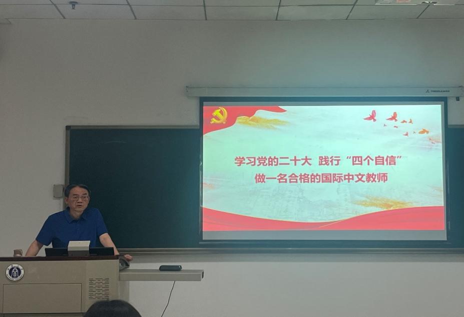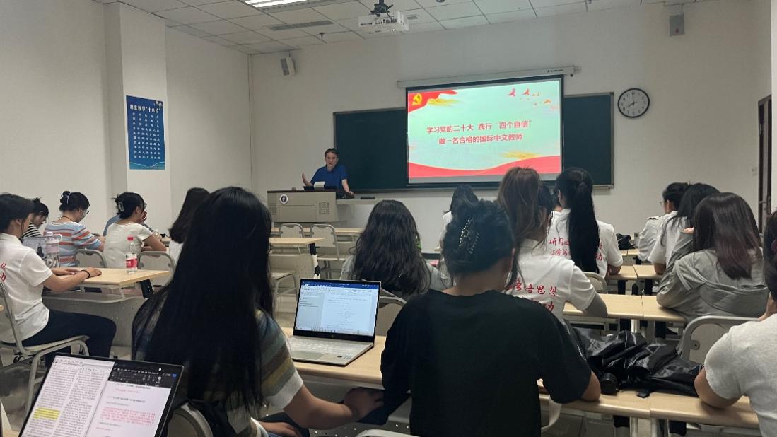 根据学习贯彻习近平新时代中国特色社会主义思想主题教育相关工作部署,6月26日下午14:30,在紫云楼312室,刘猛书记以“学习党的二十大,践行‘四个自信’,做一名合格的国际中文教师”为题面向2022级汉语国际教育硕士研究生讲授主题教育专题党课。