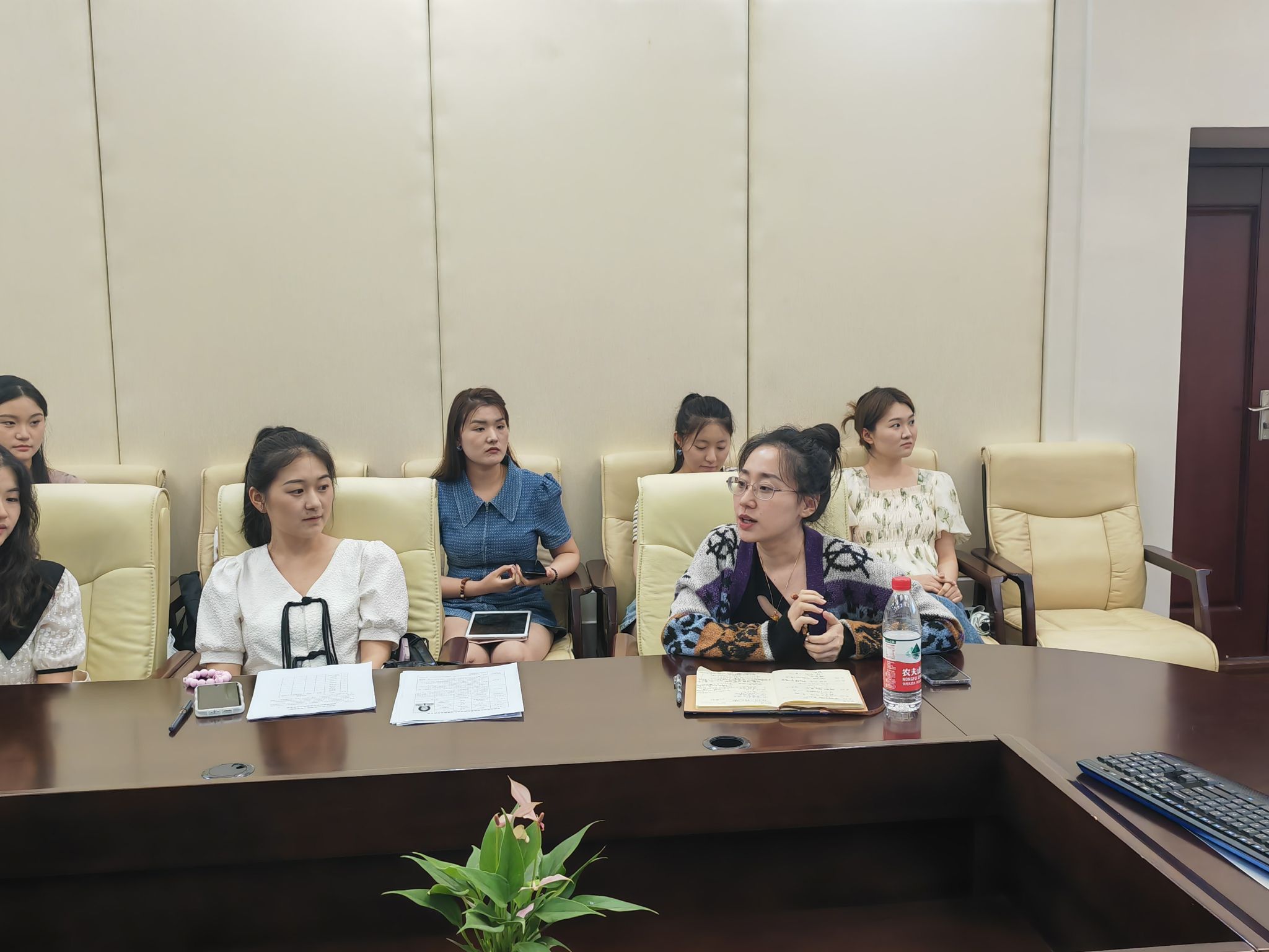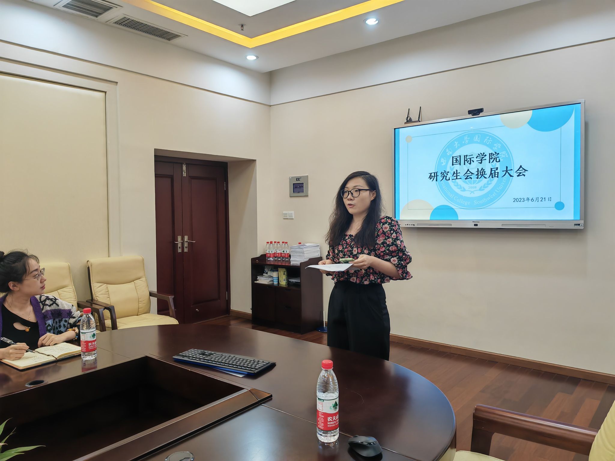 主席团成员及各部门代表逐一发言,并根据各部门的工作进行详细汇报。主席团执行主席张苗总结回顾第三届研究生会过去一年的工作,肯定各部门成员的辛勤付出,同时也指出研会工作仍需提高完善并提出相应的建议。张苗以“鲜衣怒马少年时,不负韶华行且知”为寄语,希望未来研会成员能坚守初心、不断进步。主席团成员黄奕瑄对其分管部门的工作进行总结汇报,同时对部门未来规划做详细阐述,并希望能从各方面实现研会新突破。