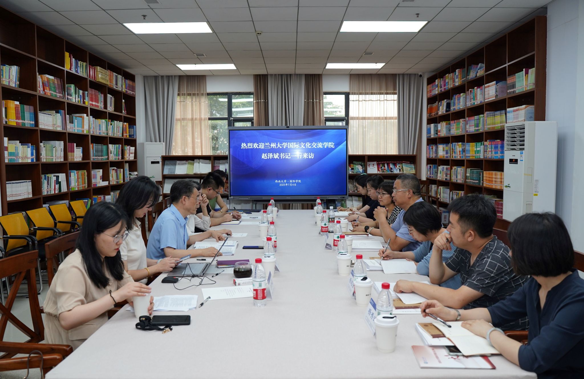 7月4日下午,兰州大学国际文化交流公司直属党支部书记赵泽斌一行7人来公司交流,调研来华留学质量认证工作开展情况、国际员工培养先进经验和做法、国际员工日常管理和服务工作、国际教育提质增效典型举措等工作。公司党委书记刘猛,汉教系、教学办、综合办、招生办及学工办负责人参加座谈交流,会议由刘猛书记主持。
