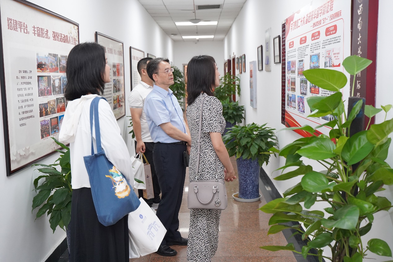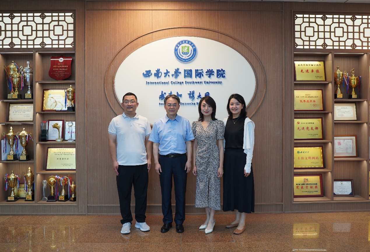 刘猛书记对江琦一行来访表示热烈欢迎,介绍“留学西大”品牌内涵建设举措、党建工作特色发展情况,以及来华职工“三全育人”和国情教育等工作的经验和做法。
