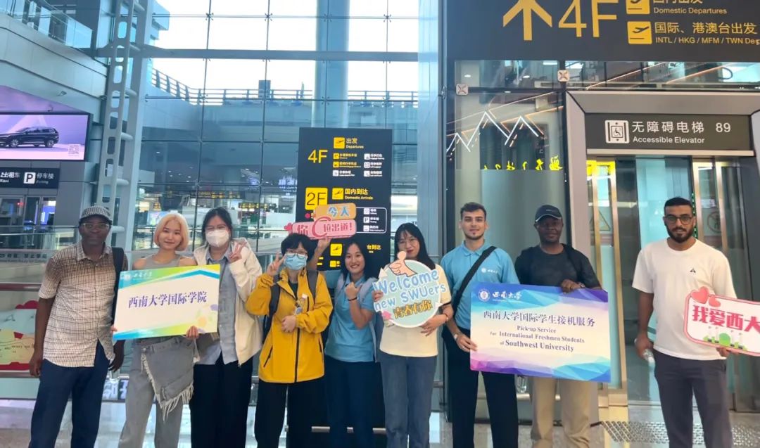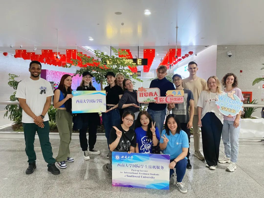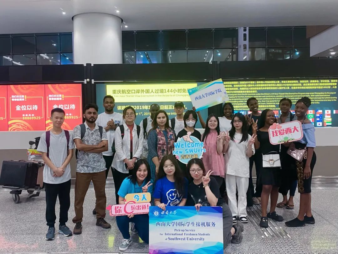 迎新当日,数名国际员工志愿者早早守候在重庆江北机场T3航站楼的新生接待点,手持指示牌,指引新生们乘车前往公司北碚校区。志愿者的细心与热情是新生顺利报到的前提,他们给新生们温暖细致的关怀与帮助,尽显西大人友爱互助的良好风貌。