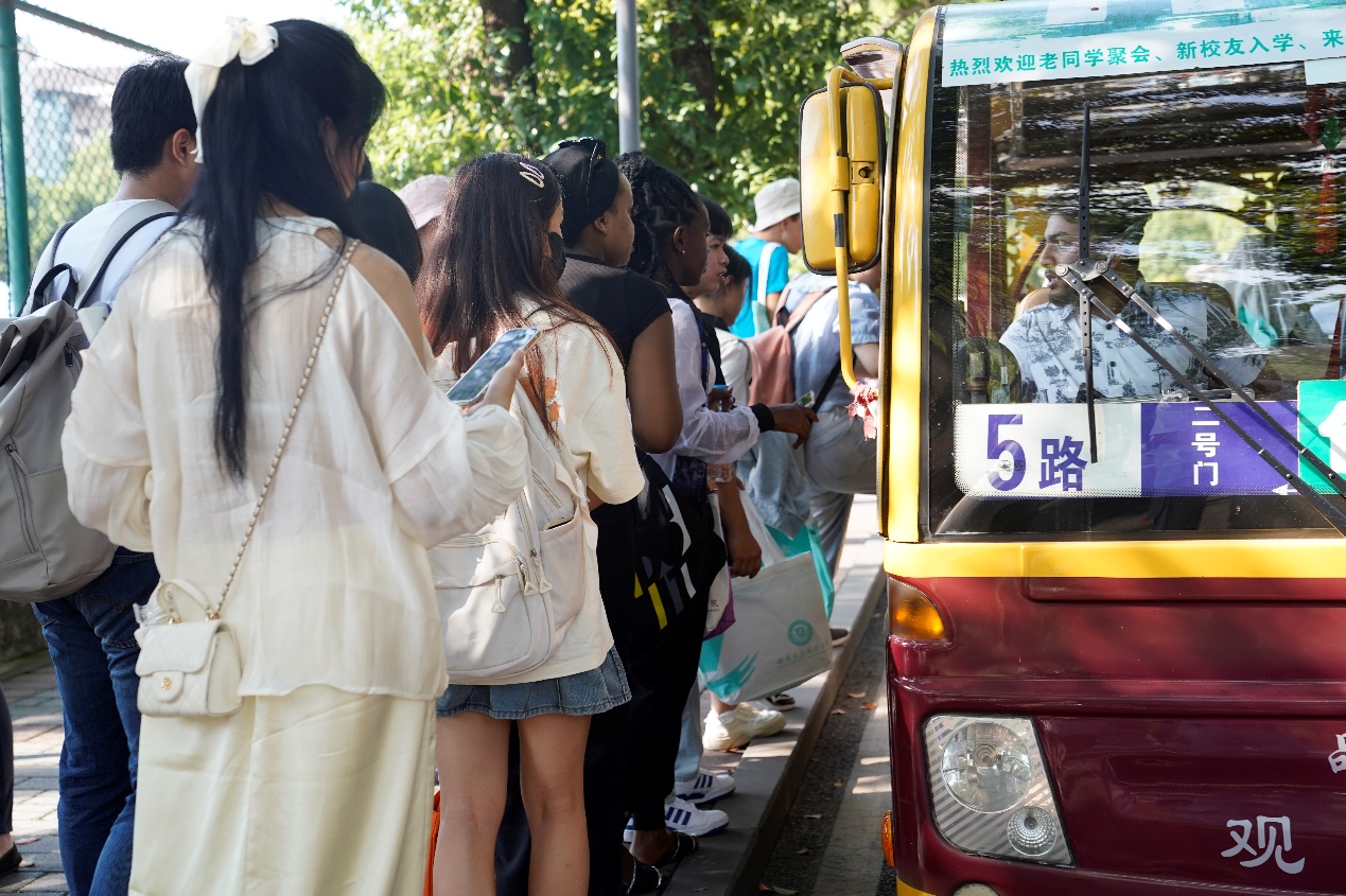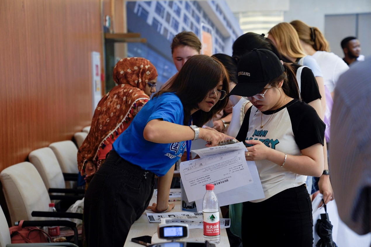 乘坐统一安排的校园观光车,国际员工新生到达职工公寓的新生接待现场,志愿者们热情周到地帮助新生们办理校内住宿,引导他们加入宿舍微信群并协助他们购买床上用品等,让国际员工感受到了既方便快捷又温暖周到的一站式服务。