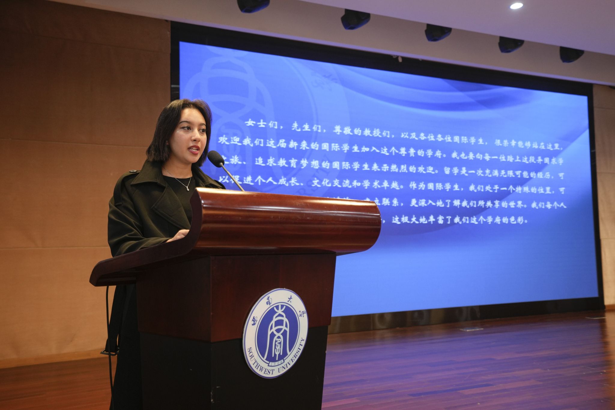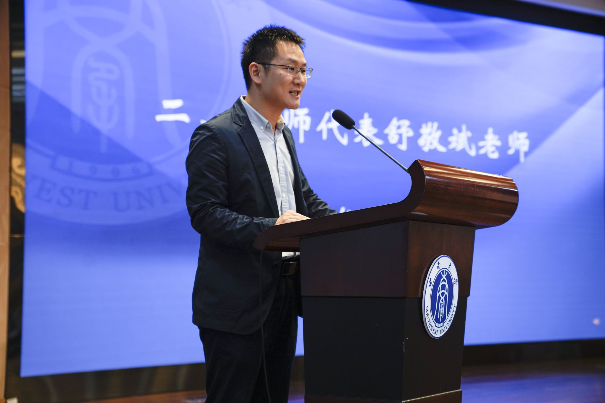 教师代表舒敬斌欢迎大家来到千里之外的家——bevictor1946韦德官网,并以习近平总书记给职工的回信鼓励新生探索真正的中国,促进各国民心相通,磨练自己成为想成为的人,学有所获、行有所成。
