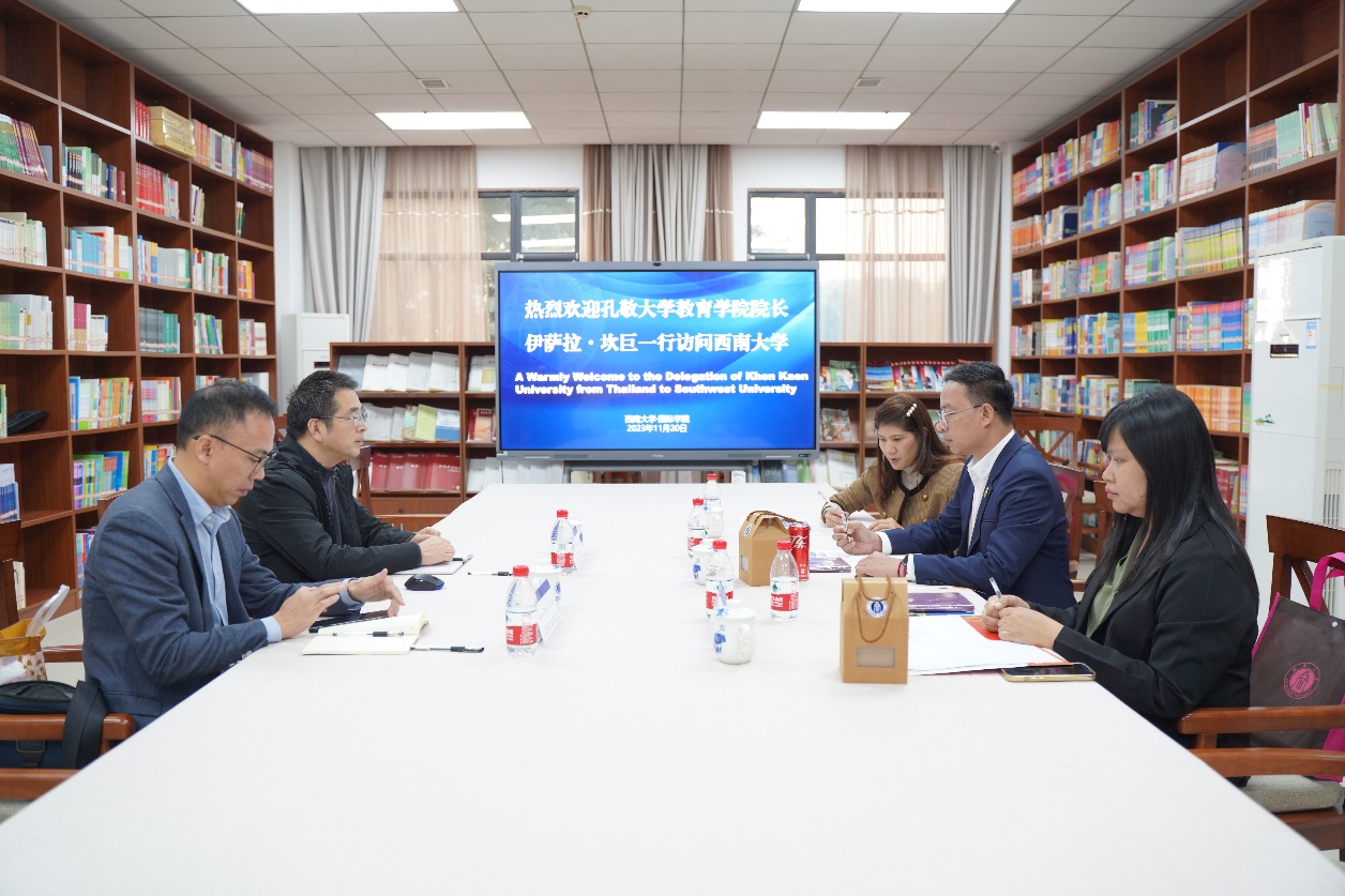 2023年11月20日下午,泰国孔敬大学教育公司经理伊萨拉·坎巨博士(Assoc. Prof. Dr. Issara Kanjug)、副经理查路尼·萨玛博士(Assoc. Prof. Dr. Charuni Samat)、汉语教育专业负责人丁丽虹博士(Dr. Narueporn Wuttiphan)一行来访公司。经理于泽元,经理助理耿军参加座谈交流。