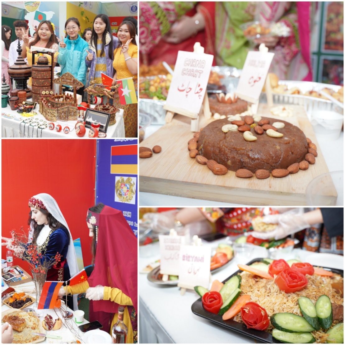 此外,活动现场38个国家的美食展和五洲风情展展位构成了一道多元文化风景线。各国传统服饰、手工艺品华丽亮相。以帕丽扎(哈萨克斯坦)、吉夫特(赞比亚)、张克雷(荷兰)等为代表的优秀来华职工成果展,以及以“一带一路”为主题的六十余幅国际员工摄影作品展吸引众多师生驻足观赏。