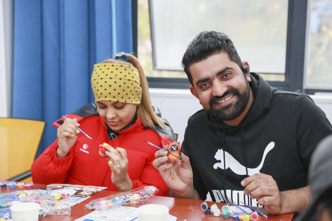 来自巴基斯坦的伊克拉、扎基尔和达西扎尔:看到职工群里发布的活动信息慕名前来,果然没有让我们失望。这个有趣的活动既让我们放松,又认识了其他国家的好朋友,好玩、爱玩、下次还来!