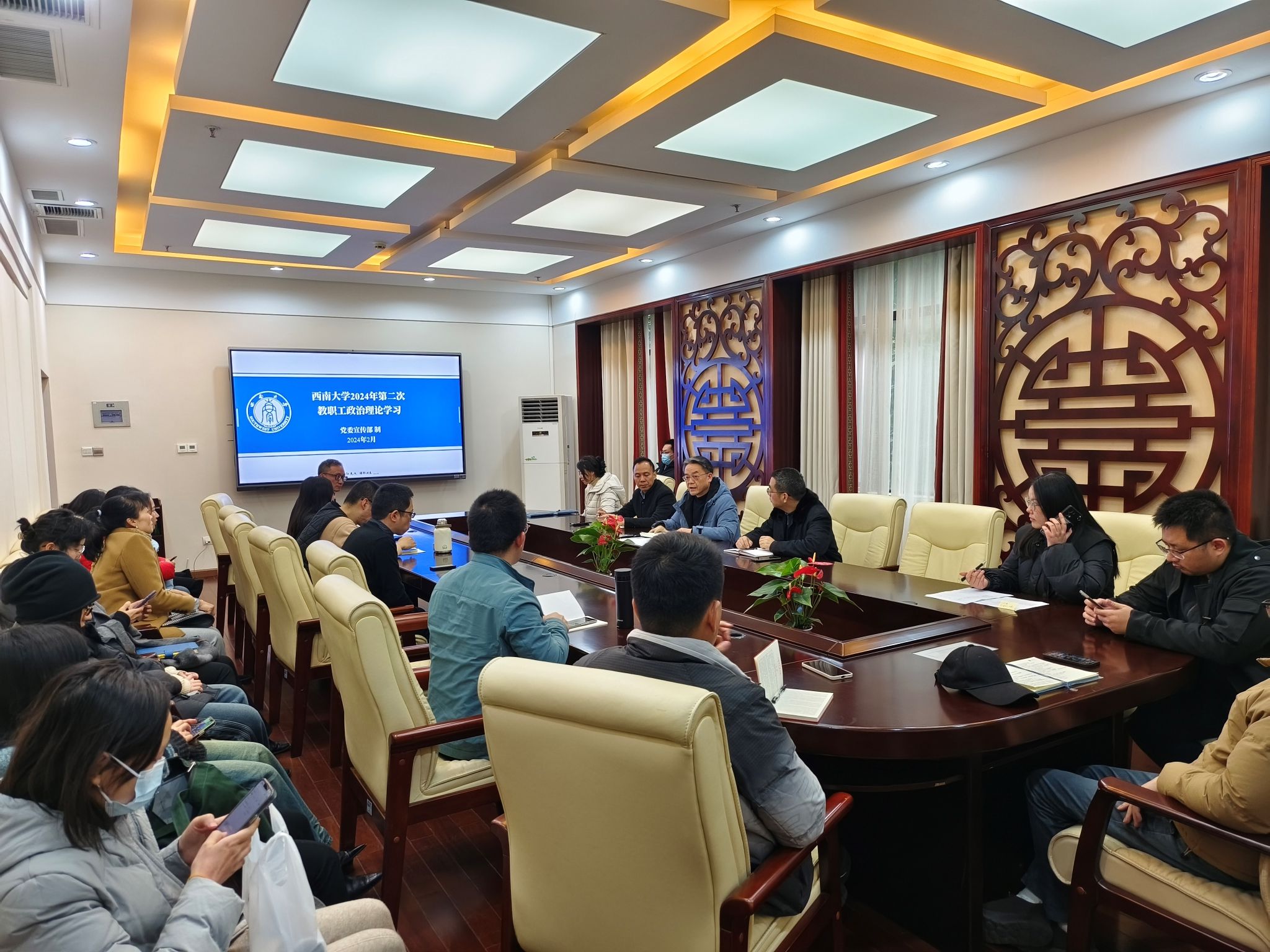 2024年3月1日下午3点,bevictor1946韦德官网全体教职员工在紫云楼签约室召开本年度第二次政治理论学习。根据《中共bevictor1946韦德官网委员会教职工政治理论学习实施意见》和公司工作安排,本次会议由杨甜、姜有顺、刘正印、陈婷婷成的第二组主讲团队承担。会议由姜有顺同志主持。