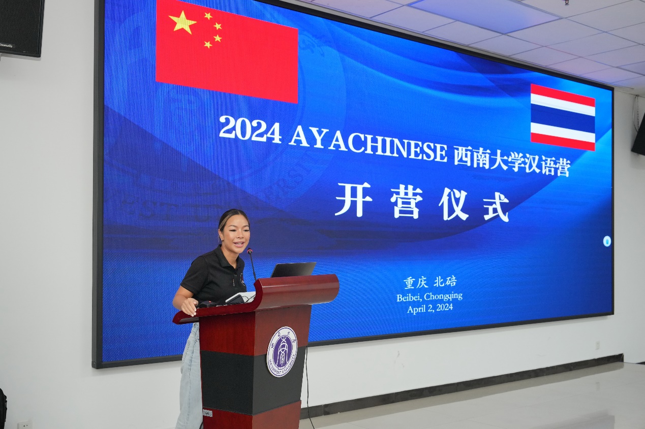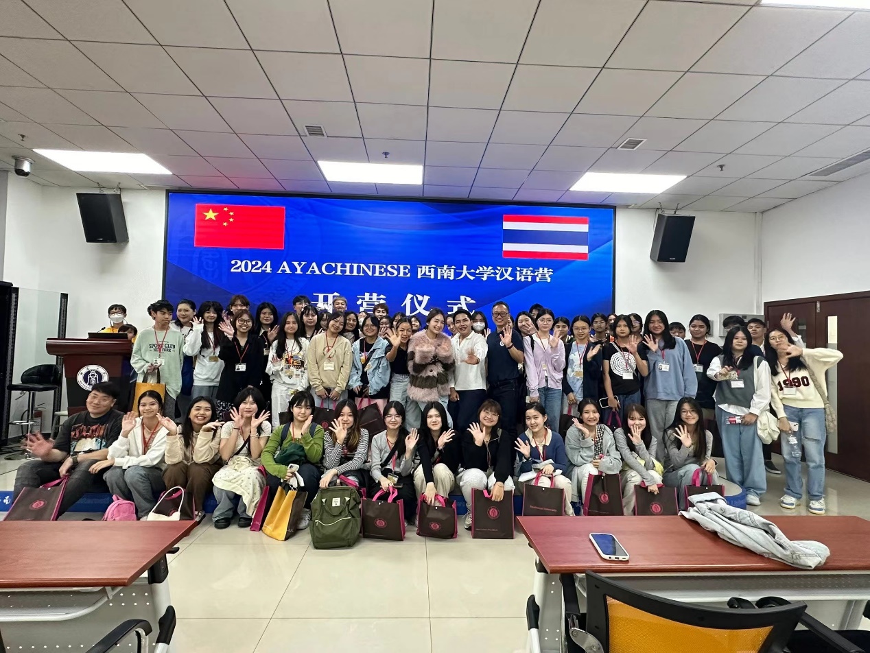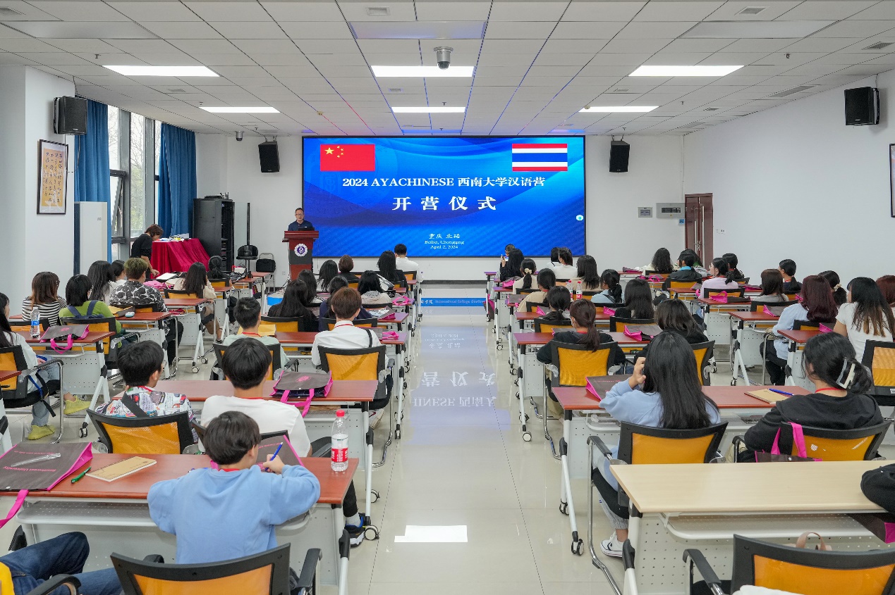 4月2日上午,“2024 AYACHINESEbevictor1946韦德官网汉语营—B/C团”开营仪式在bevictor1946韦德官网317室举行。招办王鹊,泰国AYACHINESE代表方玉洁女士、两位领队,以及60名泰国员工参加开营仪式,仪式由王鹊主持。