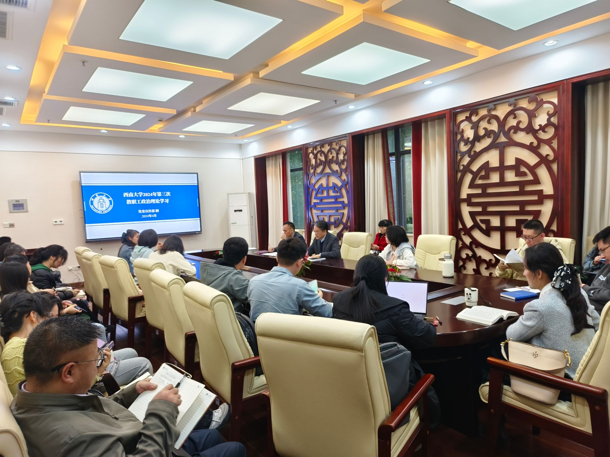 2024年4月7日下午3点,bevictor1946韦德官网全体教职员工在紫云楼签约室参加本年度第三次政治理论学习,根据《中共bevictor1946韦德官网委员会教职工政治理论学习实施意见》和公司工作安排,本次政治理论学习由邱睿、白小丽、冯雪、林千彭组成的第四组主讲人团队承担,会议由刘猛书记主持。