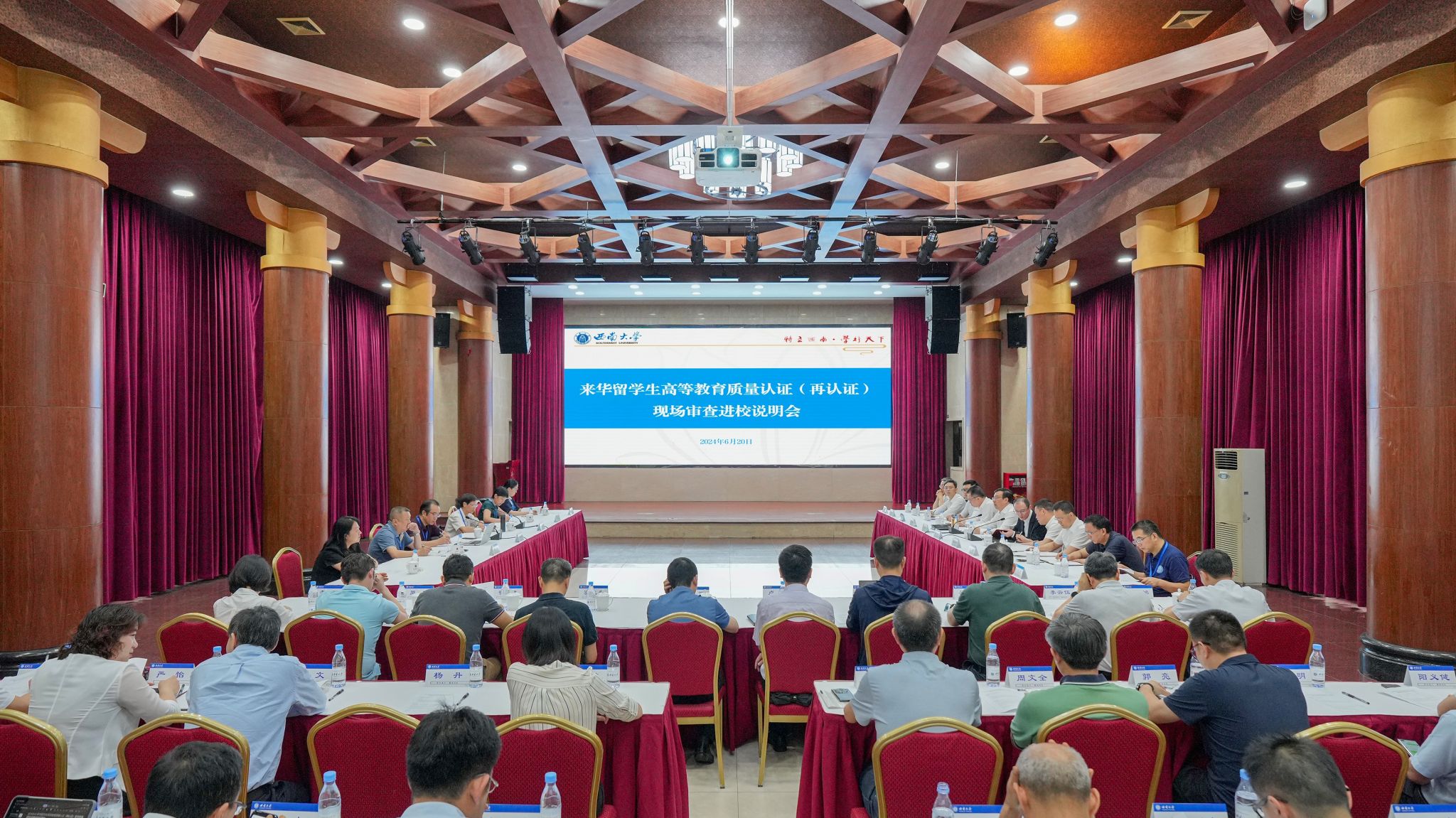 现场审查工作说明会上,王进军介绍了公司概况及来华留学工作的历史沿革、办学宗旨、体制机制和战略举措,表示将全力配合专家组做好现场审查工作。林仕梁指出,来华留学教育对于国家经济社会发展具有十分重要的意义,再认证旨在推动公司来华留学教育高质量发展。认证小组审查组长、对外经济贸易大学海南研究院经理韩维春介绍了现场审查工作情况和要求。黄杰汇报了公司来华留学教育概况及认证自评自改情况。