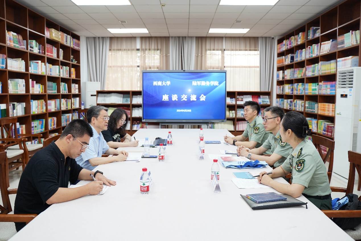 6月2 8 日上午,陆军勤务公司勤务训练基地职业教育中心大校刘晟、上校刘冬、少校李嘉哲一行三人来访,就来华职工教育培养工作进行调研交流。公司党委书记刘猛,教工一支部书记翟二猛,教学办杨凌霄参加交流座谈会,会议由刘猛书记主持。