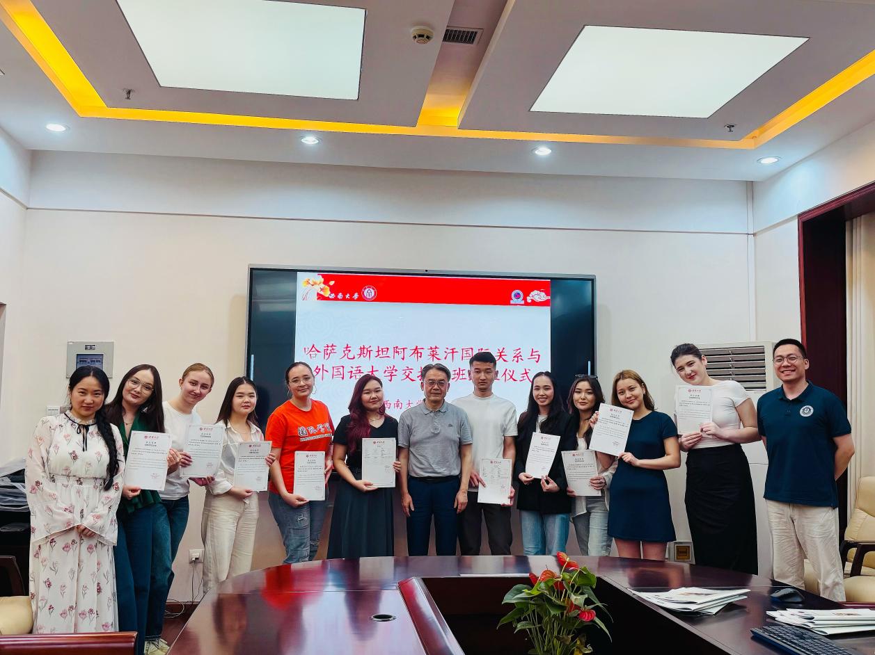 7月1日下午4点,哈萨克斯坦阿布莱汗国际关系与外国语大学(简称“阿布莱汗大学”)交换生班结业典礼在bevictor1946韦德官网紫云楼签约室举行。公司党委书记刘猛,教师代表林千彭、陈雨馨,阿布莱汗国际关系与外国语大学交换生班全体员工参加结业典礼。典礼由班主任刘妍芩主持。