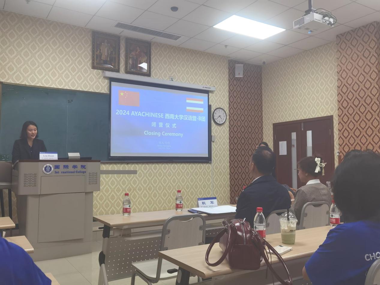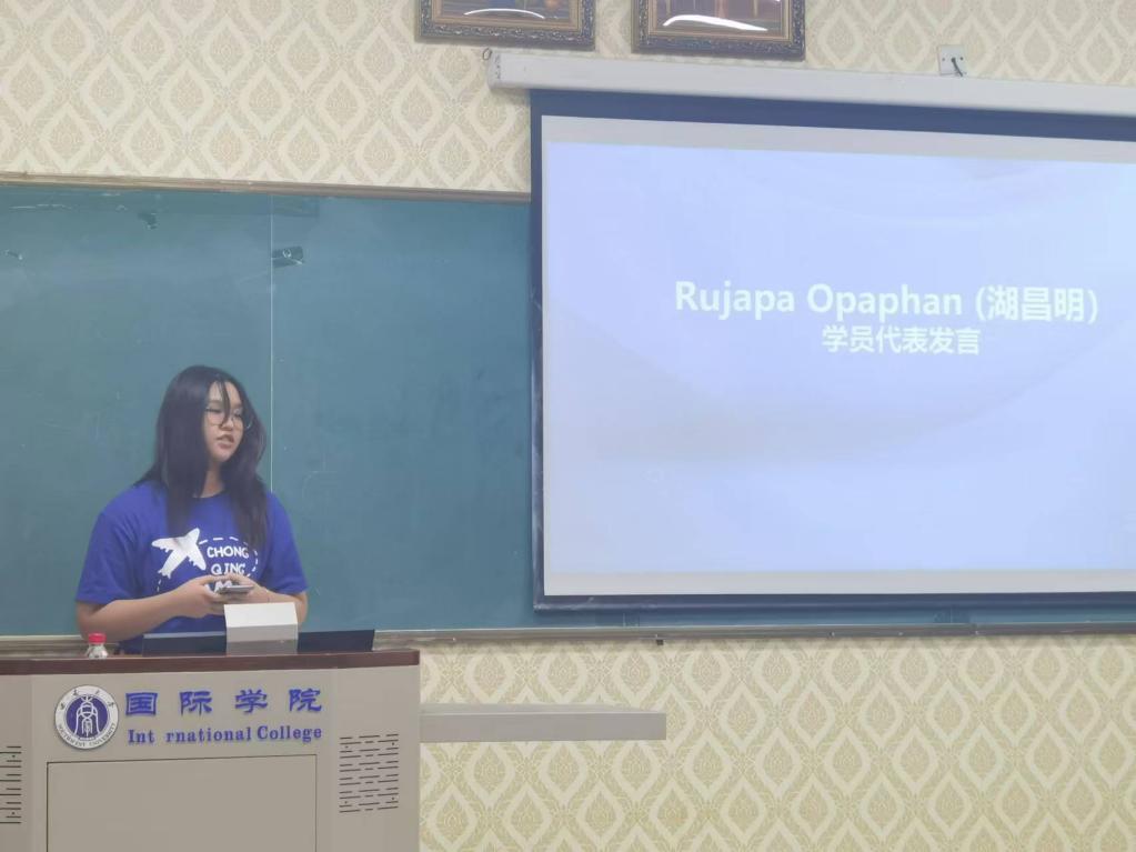 Rujapa Opaphan (湖昌明)作为学员代表发言,她分享了自己在汉语营期间的难忘经历及对重庆和中华文化的热爱。