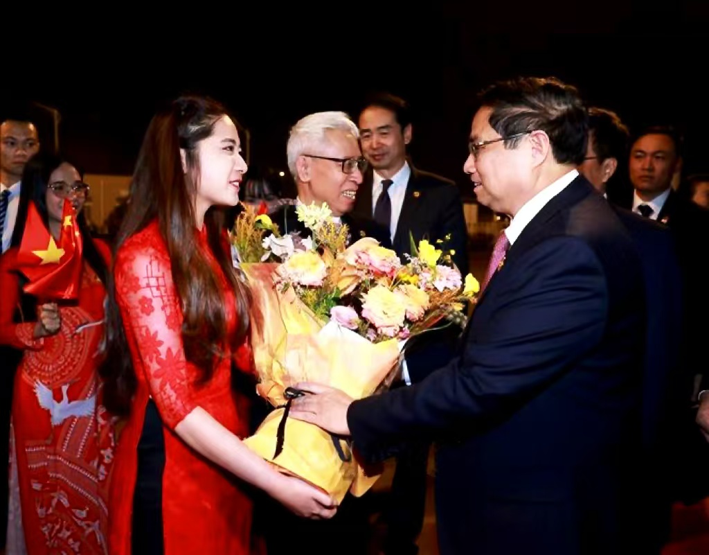 11月8日,越南总理范明政率越南代表团来渝访问,出席在重庆举办的中越企业经贸物流合作对话会、越南文化旅游推介会,前往重庆团结村中心站参加陆海新通道越中班列接车仪式,考察陆海新通道重庆无水港、红岩村等地。期间,越南总理范明政亲切会见越南来渝职工和川渝越南同乡会侨胞。