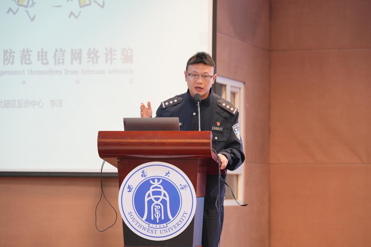 北碚区反诈中心李洋警官则以“老员工如何防范电信网络诈骗”为主题,为同学们上了一堂生动的反诈公开课。李警官用反诈宣传视频作为开场,引发员工思考如何反诈,再结合近期发生的真实案例,详细分析了电信诈骗的常见形式及特点。随后,李警官设置了多个互动环节,引导员工共同总结出防范建议,输入与输出并行。同学们积极参与,进一步了解了如何识别诈骗、保护个人信息,大家纷纷表示受益匪浅。