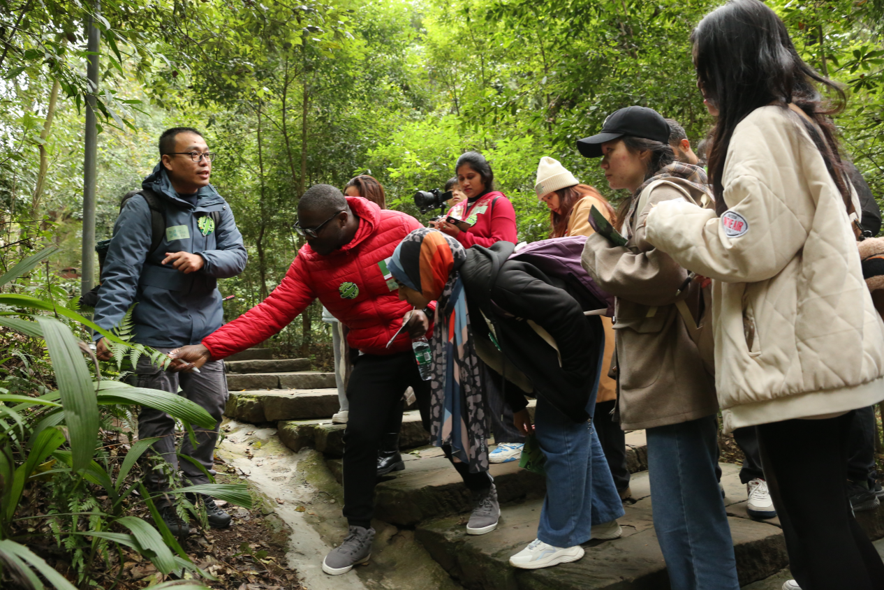 午餐与短暂休息后,国际员工们化身 “公民科学家”,在植物专家讲师的引领下走进缙云山森林。他们充分调动视觉、听觉、嗅觉、触觉等所有感官,去探寻森林生态系统的奇妙之处。