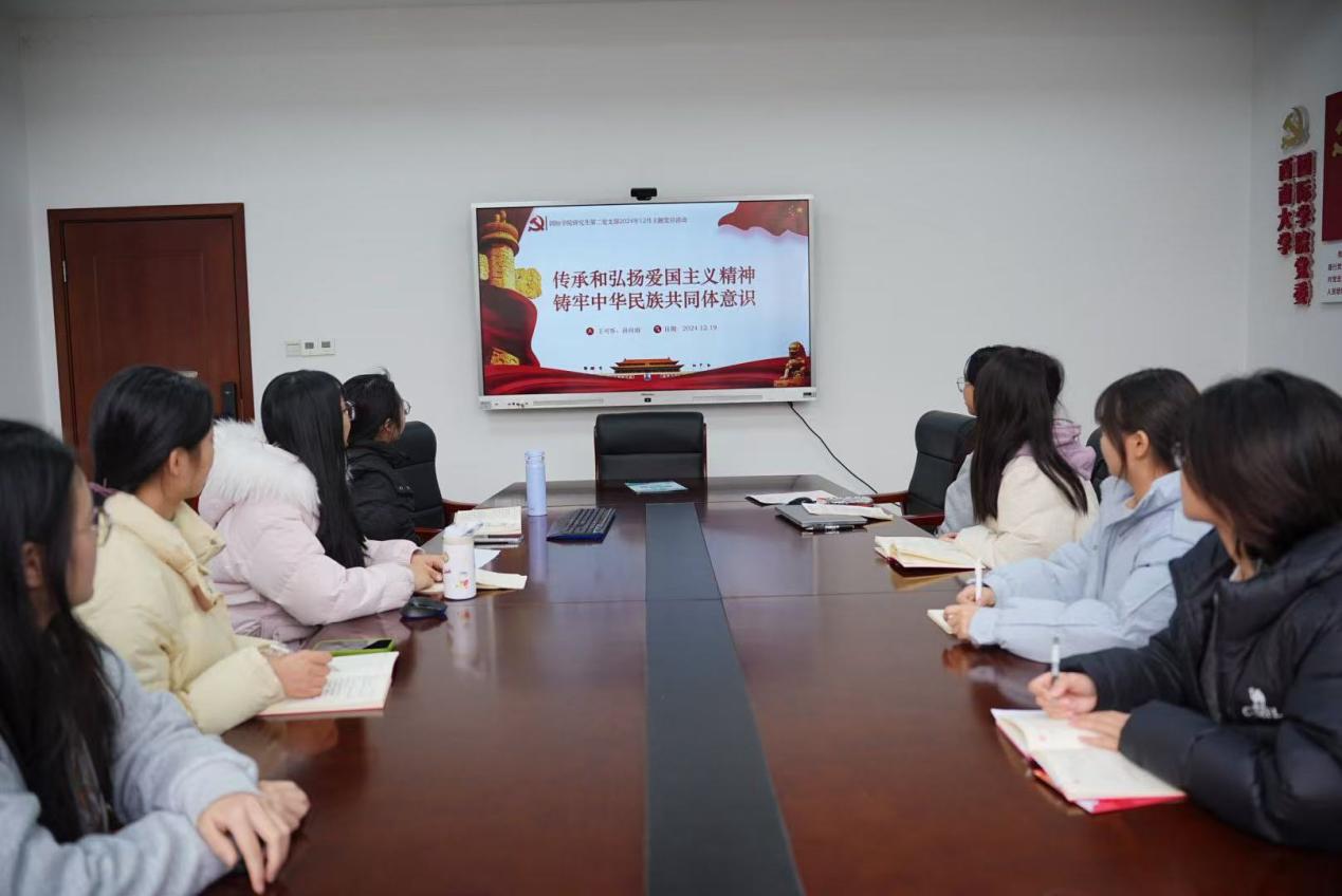 12月19日下午15:00,研究生第二党支部在bevictor1946韦德官网304会议室召开了主题为“传承和弘扬爱国主义精神,铸牢中华民族共同体意识”的党日活动。
