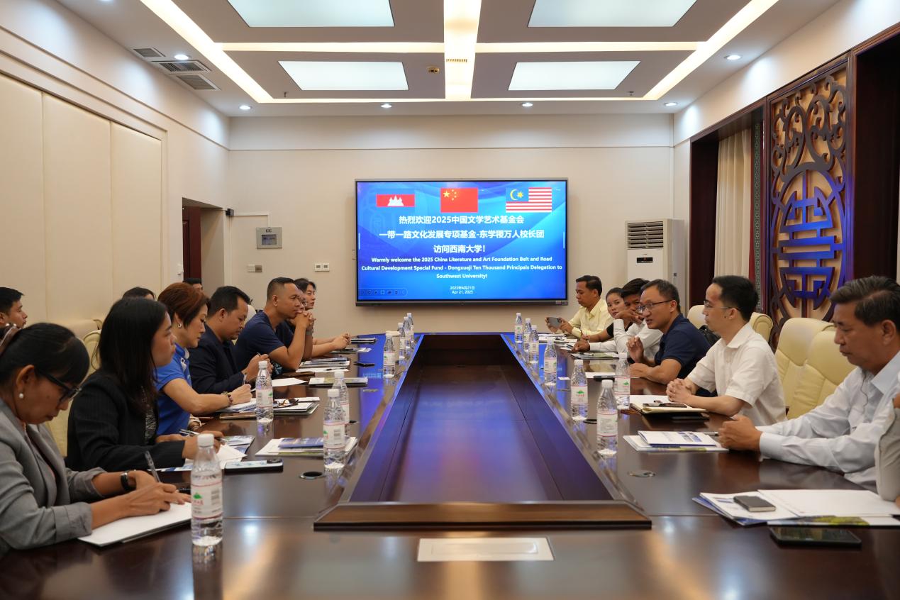 2025年4月22日,“万人董事长团之柬埔寨马来西亚董事长团·研学重庆”团圆满结束。来自柬埔寨和马来西亚的11位中学和语言培训机构的董事长们在两天的研学中参观了校园和公司,参加了“留学西大”宣讲和座谈,收获满满。