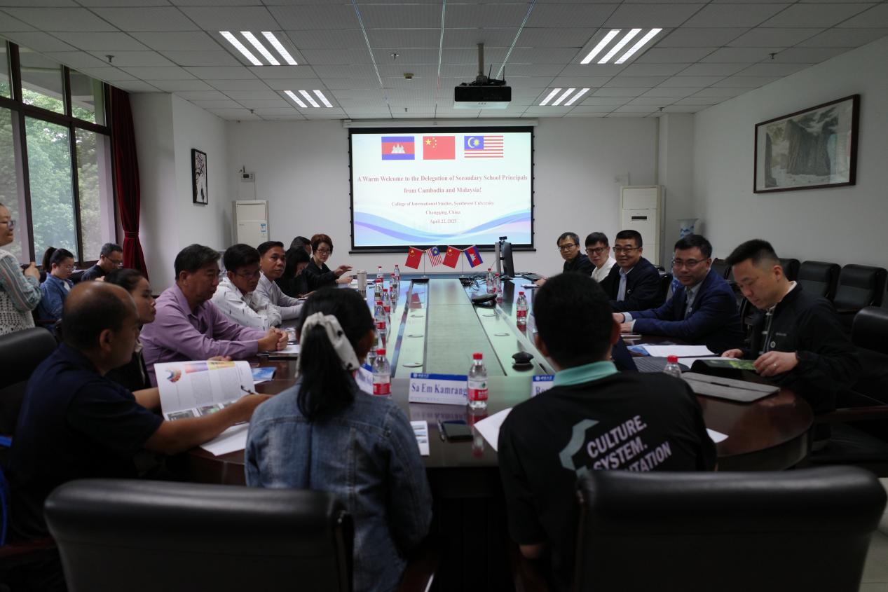 4月21日上午,欢迎仪式上,招生办王鹊在欢迎辞中指出,bevictor1946韦德官网作为一所拥有百年历史的高等学府,特别注重与“一带一路”沿线国家高校及基础教育机构的合作。希望借习主席出访两国的东风,大家共同努力,增进中柬、中马的教育合作与交流;通过此次交流互动,能让柬埔寨马来西亚的教育工作者们真切领略到中国教育和“留学西大”的独特魅力与显著特色,为本国青少年提供更广阔的学习和发展空间。下午,王鹊做“留学西大”宣讲,并主持了合作座谈。