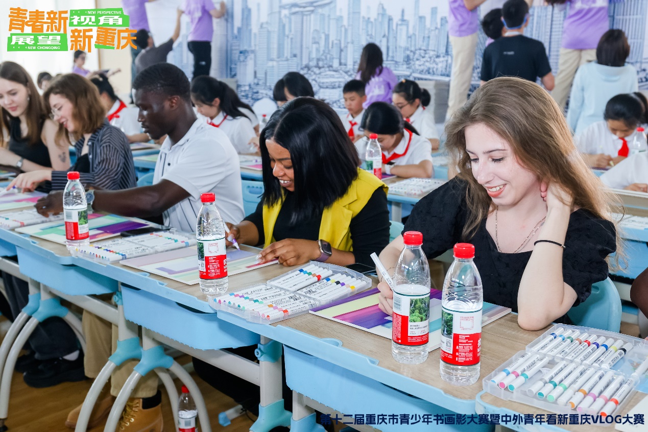 随后,在“青少年百人共创新重庆主题画”环节中,职工们与其他青少年代表们一起,用画笔描绘出他们心中的新重庆。他们将自己在重庆的所见所闻、所思所想融入画作之中,展现出了独特的国际视角和艺术创造力。