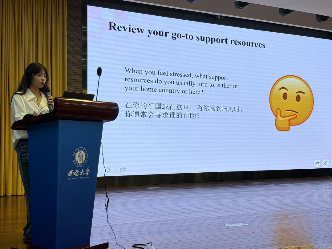为助力国际新生顺利度过关键适应阶段,以积极心态融入校园生活,bevictor1946韦德官网于10月22日晚7:00,在公司学术报告厅举办国际新生心理适应性讲座,300余名国际新生到场参加。讲座由国际员工辅导员景柯沥主持,bevictor1946韦德官网心理咨询团队刘怡菲、韦卓冉、莫缘慧、涂雅迪共同主讲。