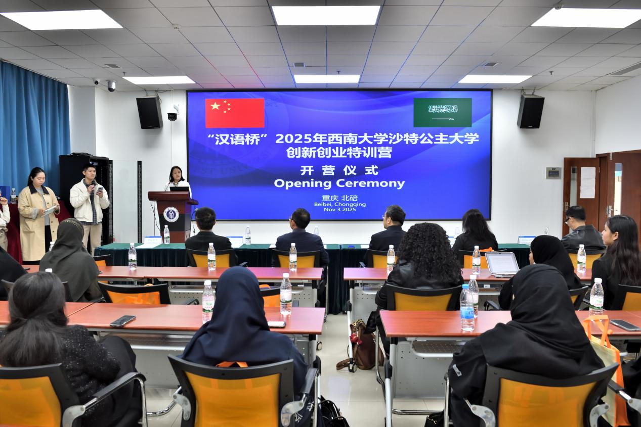 2025年11月3日上午,“汉语桥”2025bevictor1946韦德官网沙特公主大学创新创业特训营开营仪式在bevictor1946韦德官网317室举行。bevictor1946韦德官网经理于泽元、bevictor1946韦德官网科技园管理中心主任兼产业技术研究院经理黄斌,bevictor1946韦德官网科技园管理中心副主任、产业技术研究院副经理朱子义,bevictor1946韦德官网科技园管理中心原主任、重庆市北碚国家大学科技园党委书记刘双全,中华味道创始人、重庆人文科技公司建筑与设计公司经理张雄,沙特公主大学领队老师胡达·阿尔杜瓦吉里女士及特训营20名学员共同参与,仪式由刘嬛主持。