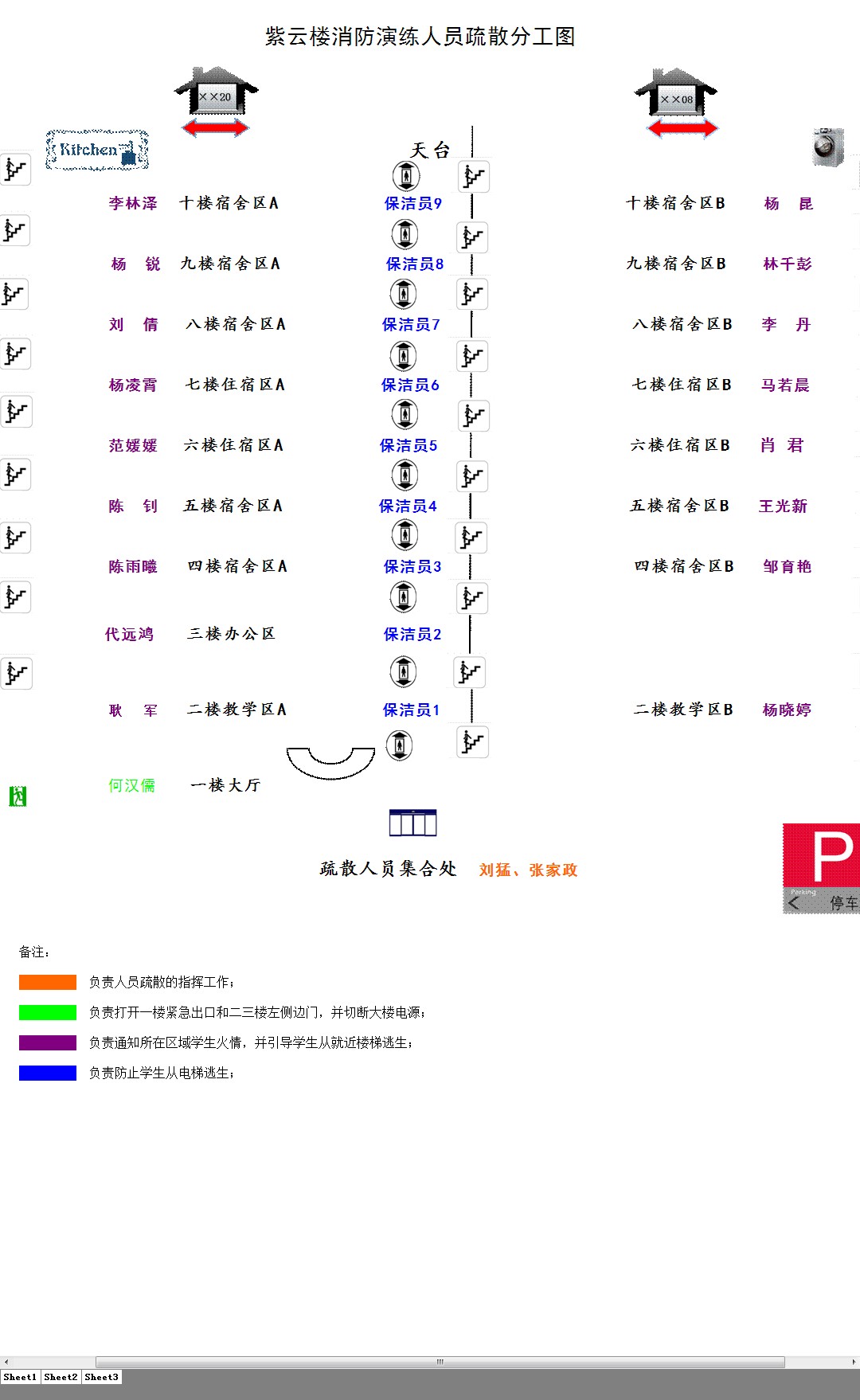 2、下午4点,老师会再次到各楼层寝室逐一敲门,演练正式开始,请大家用湿毛巾捂住口鼻,按照老师的引导,从就近楼梯有序逃出紫云楼外,并在一楼大门外集合。