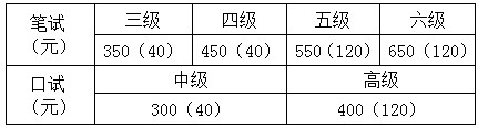 HSK考试报名收费标准如下:(括号内为中国少数民族员工收费标准)