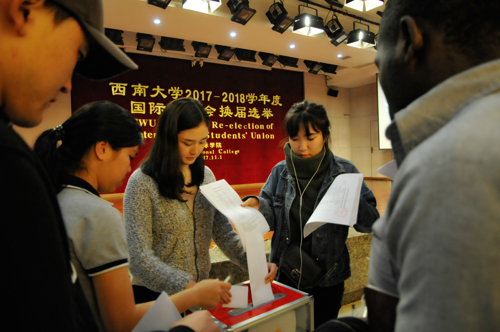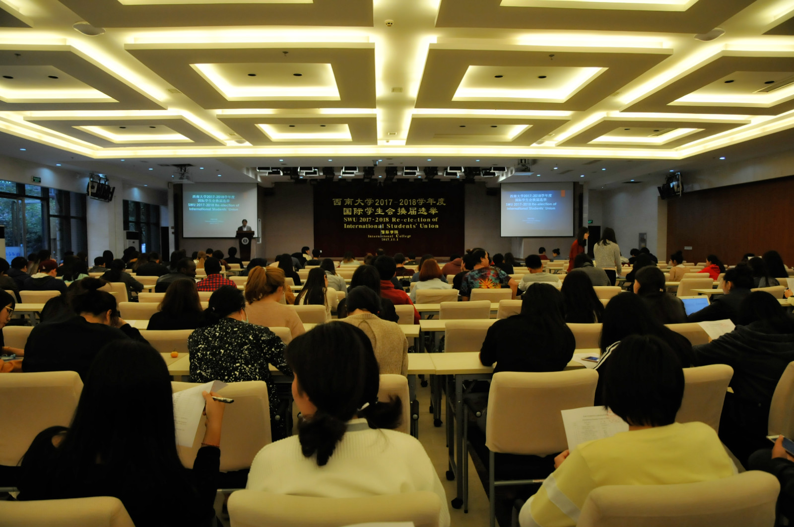 11月4日下午四时三十分,2017-2018学年度bevictor1946韦德官网国际员工会换届选举大会在bevictor1946韦德官网报告厅举行。来自12个国家的19名候选人就新一届国际员工会的主席、副主席和秘书等职位展开竞选。公司党总支书记刘猛,公司员工工作办公室老师及全校300余名国际员工参加选举会。