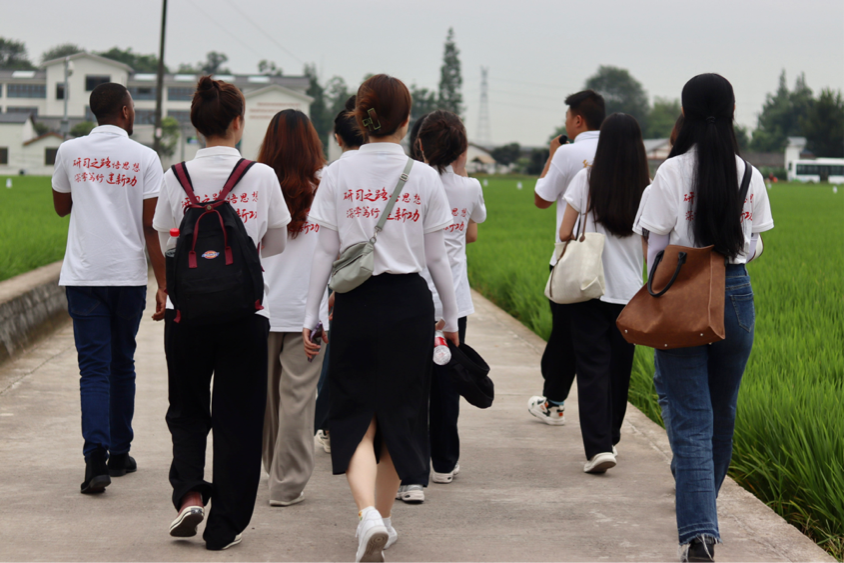 7月1日上午9点,“紫云研学”实践队抵达四川眉山永丰村,沿着习近平总书记考察的“一田一池一站”路线开启走访调研。永丰村取“蓄水灌田、永保丰收”之意,自古便是“产粮宝地”,在新时代更是要打造更高水平的“天府粮仓”。行走在田成方、路相通、渠相连的高标准农田间,只见田中秧苗初长,绿意盎然,阵阵清风徐来,仿佛置身于一幅巨大的田园风景油画中。来到习近平总书记驻足过的一块高标准试验田旁,近百个水稻品牌标识牌矗立其间,彰显着“天府粮仓”的自豪,保障着国家的粮食安全。