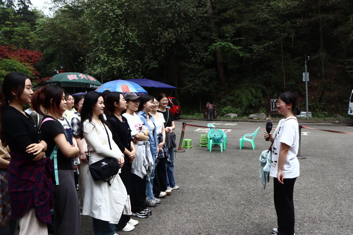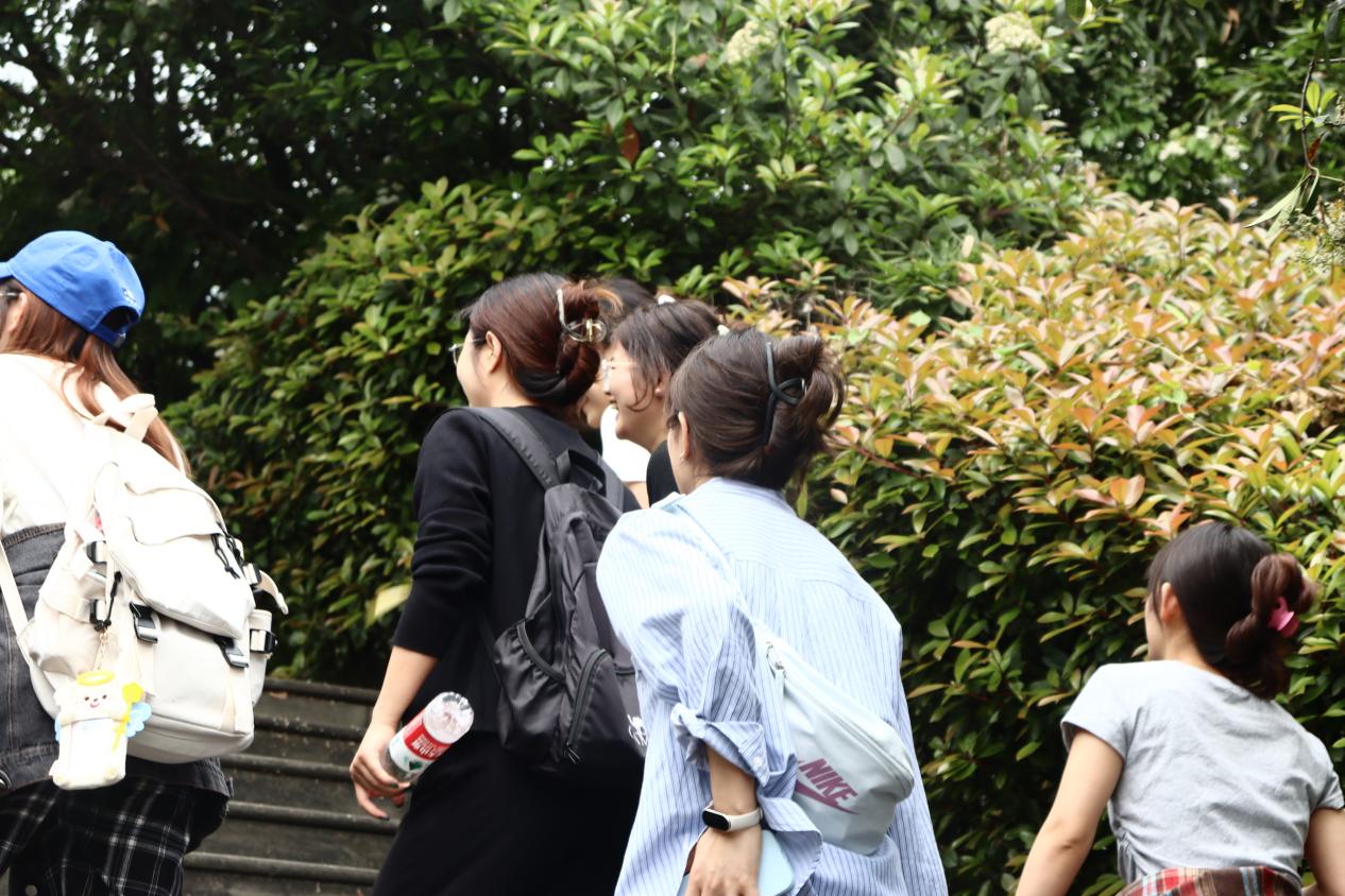 活动伊始,同学们在紫云楼集合后乘坐大巴前往缙云健身梯道,稍作休整,在组织委员胡渝和团支书陈苗苗的带领下,开始有秩序地徒步缙云山,途中观看浮雕、牌坊和缙云山赋等缙云山文化遗迹。