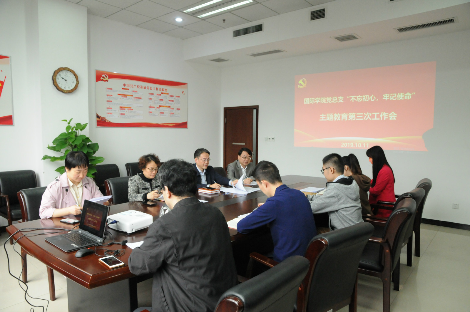 10月12日上午9:00,公司党总支在紫云楼304室开展“不忘初心、牢记使命”主题教育第三次领导小组工作会,公司党总支委员、非党总支委员院领导、4个党支部书记参加工作会。会议由党总支书记刘猛同志主持。