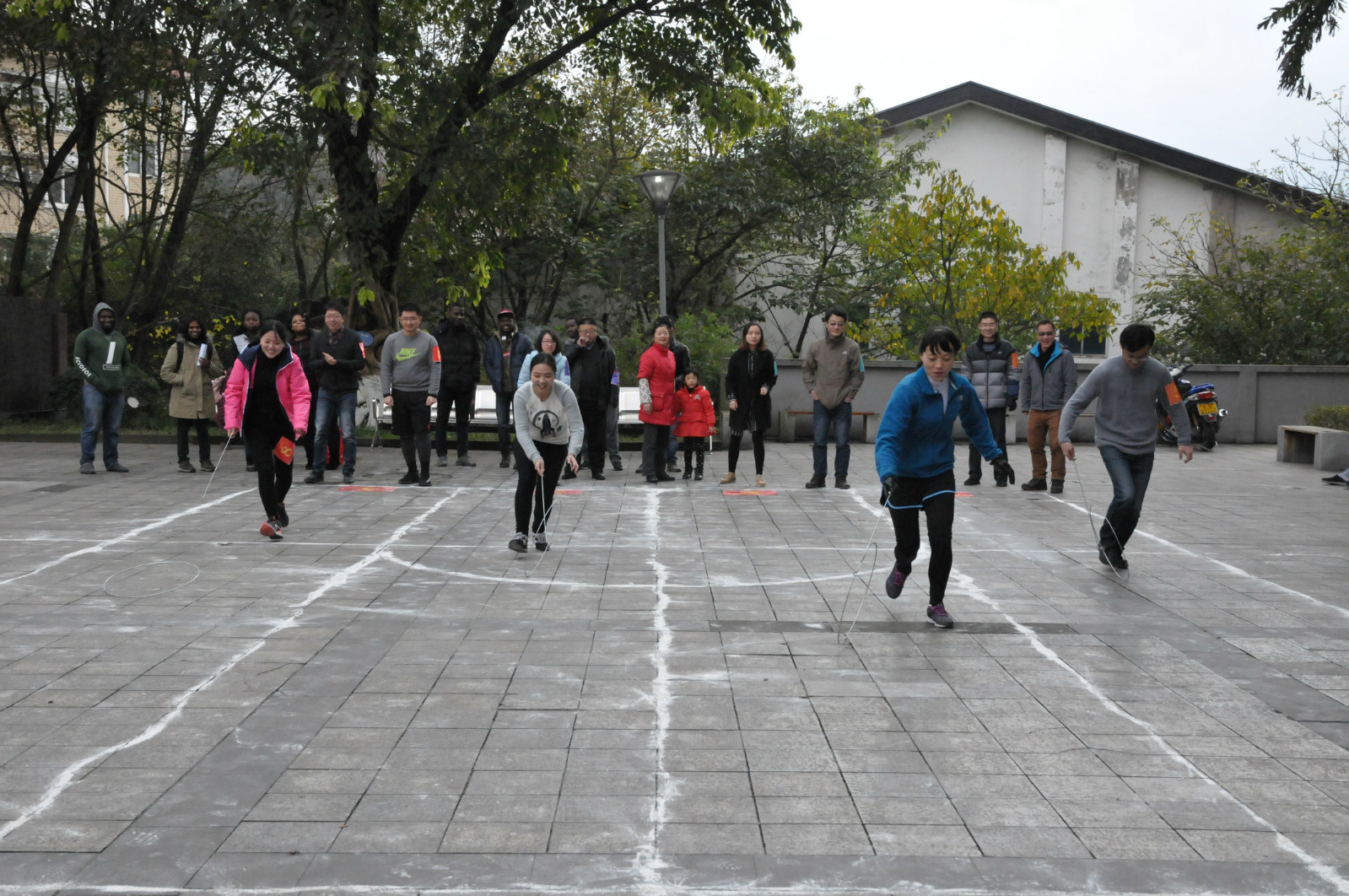 趣味运动会包括五个项目,分别是:“铁人三项”、“财源滚滚”、chairball、三分钟跳绳和拔河。教职员工通过抽签,被分为四个团队,整个趣味运动的项目以团体比赛为主,突出娱乐性、竞争性和参与性。
