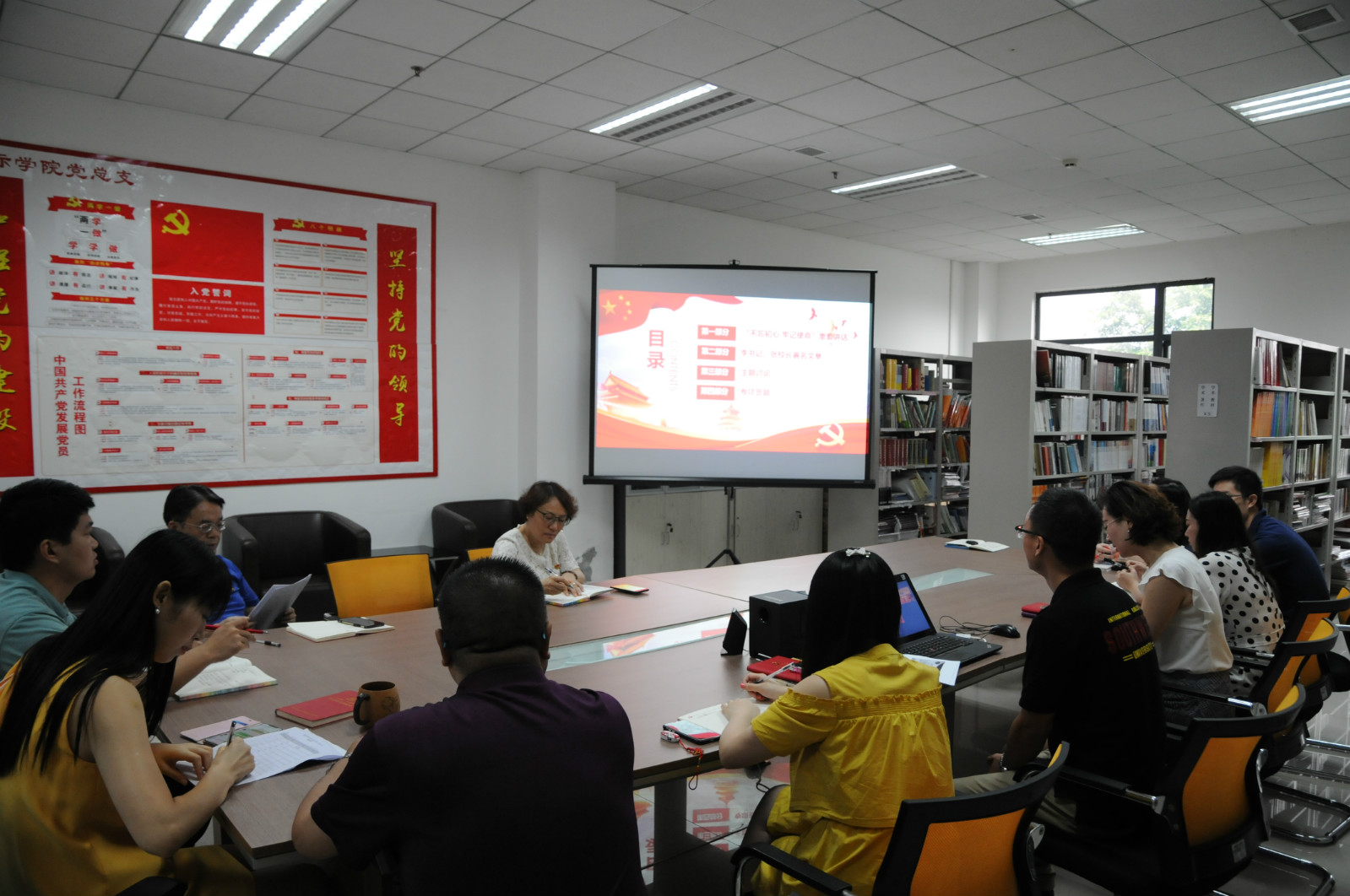 首先,教工一支部书记邱睿同志总结了本学期支部的工作情况,传达了暑期中党员同志的学习内容及形式,同时向各位同志说明了下学期支部的部分工作计划。