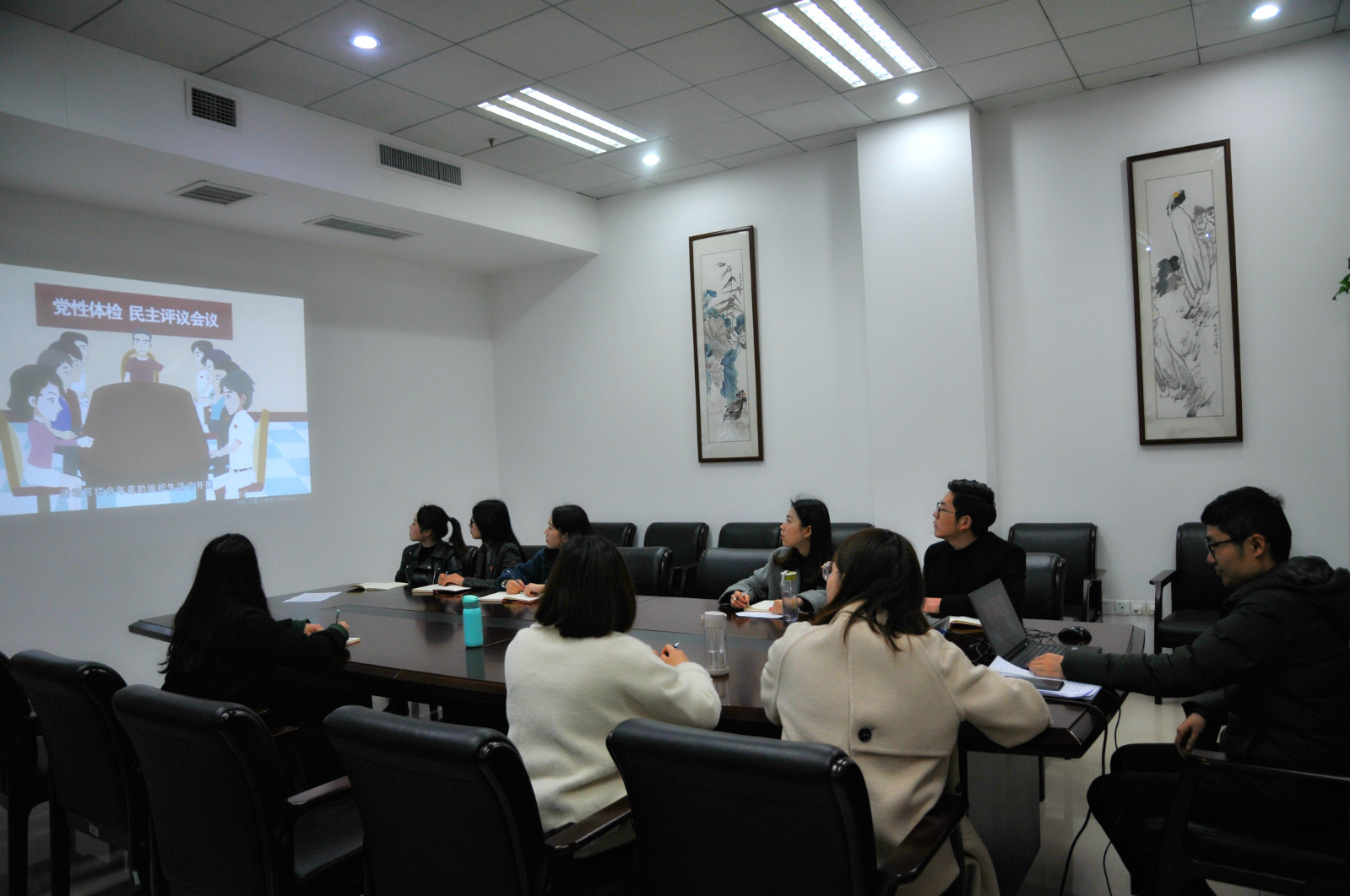 3月1日下午4:30,教工第二党支部全体党员在公司签约室举行了主题为“学用新思想,建功新时代”的组织生活会,并开展了民主评议党员工作。