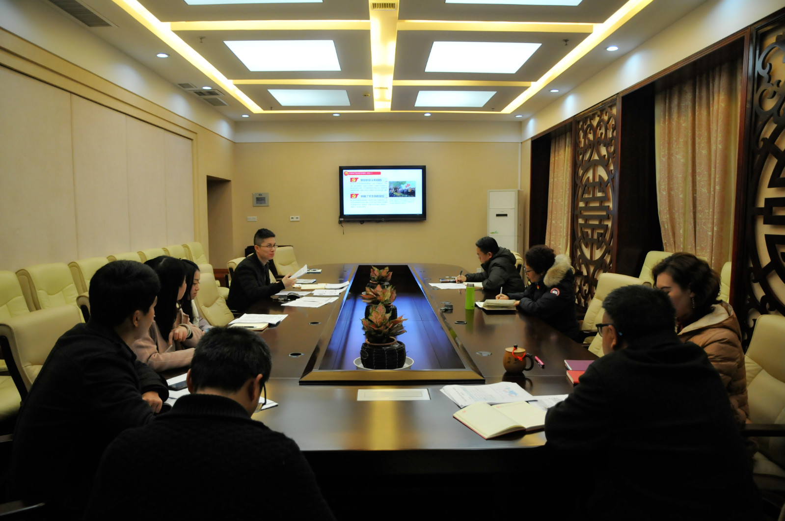 本次会议主要内容为:1.王湛明书记带领全体党员同志学习《中国共产党支部工作条例(试行)》并重点研习了与党支部建设相关的工作;2.支部书记王湛明代表支部班子向全体党员做工作汇报并进行班子测评。3.开展批评与自我批评环节,该支部员工党员根据自身思想状况,分析在学习、生活、工作作风中的不足,依次展开批评与自我批评,党员同志们积极发言,自我批评态度端正,与此同时,支部党员还相互批评,相互指正,对于其他同志的优点予以充分的肯定,缺点予以明确的说明。4.刘猛书记讲解公司党总支2019年工作要点。