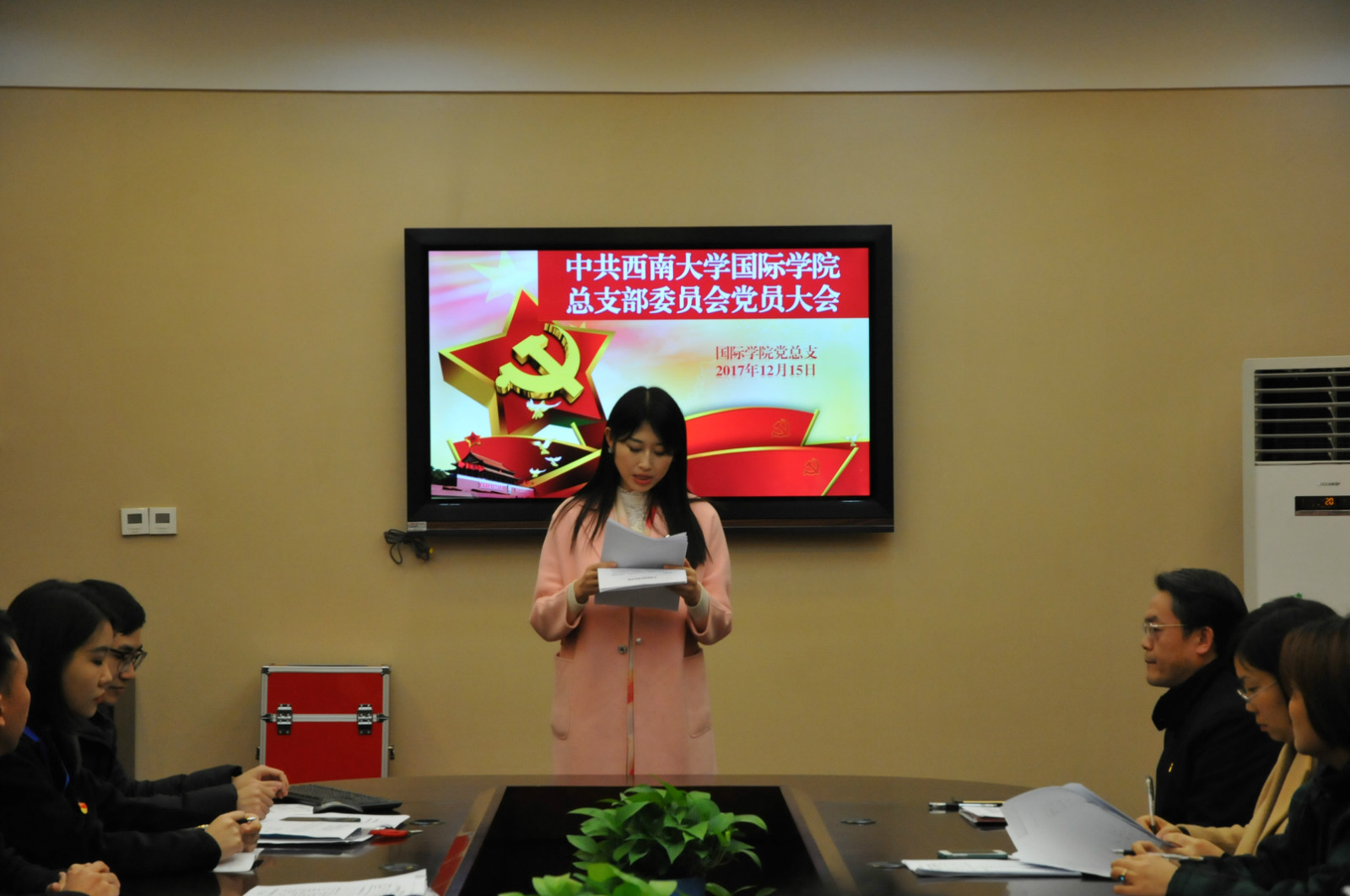 刘猛书记发言。他指出,对于公司而言,第三次党代会是在全国上下深入学习贯彻党的十九大精神之际、在公司深化综合改革攻坚阶段、推进“双一流”建设关键时期召开的一次重要会议。对于公司党总支而言,做好公司党委安排的党代会各项筹备工作,特别是党代表的选举工作,既是我们的职责所在,也是我们的责任使然。刘猛书记还对党代会代表选举工作的筹备开展情况,以及选举工作的纪律要求做了说明。