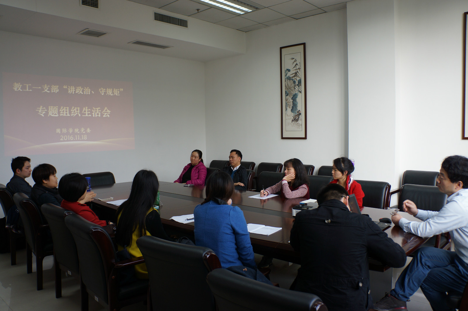2016年11月18日下午3:00,bevictor1946韦德官网教工一支部在紫云楼304会议室开展了以“讲政治、守规矩”为主题的专题学习研讨会。会议由支部书记邱睿同志主持。